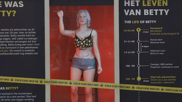 Hologram koji se pojavljuje na jednom od izloga u četvrti Crvenih fenjera je napravljen po liku Mađarice Bernadet Beti Sabo, devetnaestogodišnje seksualne radnice koja je ubijena u holandskoj prestonici 2009. godine. Više od 15 godina nakon njene smrti, policija se nada da će otkriti nove informacije o njenom ubistvu.