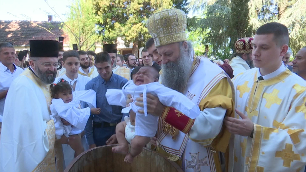Na praznik Hristovog ulaska u Jerusalim, Cveti, u Hramu Svete Trojice u Ripnju patrijarh Porfirije krstio je tridesetoro dece.