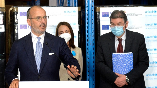 Ukupno 30 škola u Srbiji dobiće 65 uređaja za digitalne biblioteke, koje će biti na raspolaganju učenicima i nastavnicima, a za 250 pedagoških asistenata biće uručeni laptopovi kako bi mogli direktno da rade sa decom, poručio je ambasador i šef delegacije Evropske unije u Srbiji Sem Fabrici.