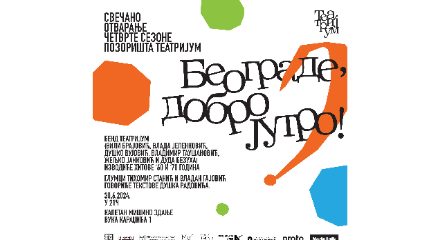 Vrata Pozorišta Teatrium 1. jula se četvrti put otvaraju u Kapetan Mišinom zdanju. Ove godine se počinje koncertom „Beograde, Dobro jutro“. Publici će se među prvima pokloniti gost Jutarnjeg programa, Tihomir Tika Stanić.