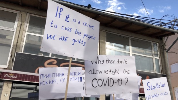 Zdravstveni radnici na severu Kosova i Metohije iz sistema zdravstva Vlade Srbije protestnom šetnjom u Kosovskoj Mitrovici izrazili su nezadovoljstvo zbog akcije upada inspektora i policije u domove zdravlja i privođenja njihovih kolega, koji se poslednjih godinu dana intenzivno bore protiv kovida 19.