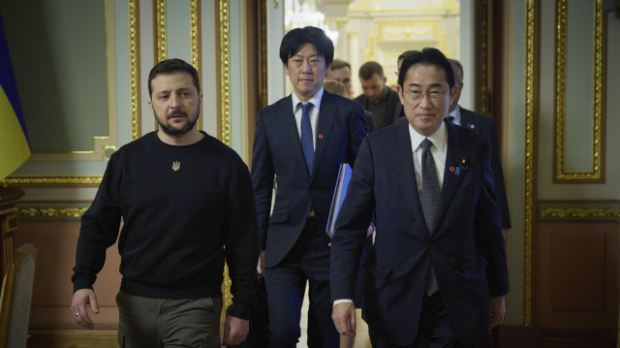 Japanski premijer posetio je Kijev kako bi pokazao odlučnost svoje države da odigra ulogu dostojnu statusa predsedavajućeg Grupe 7 upravo za vreme boravka kineskog predsednika Sija u Moskvi, ali je u žiži japanskih medija više bio bezbednosni aspekt posete nego njen sadržaj i politička simbolika.