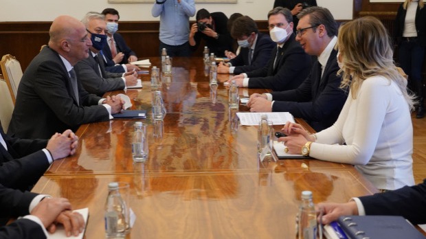 Predsednik Srbije Aleksandar Vučić sastao se sa ministrom spoljnih poslova Grčke Nikosom Dendijasom, sa kojim je razgovarao o unapređenju bilateralnih odnosa, procesu evrointegracija Srbije, ekonomskoj saradnji, situaciji vezanoj za pandemiju kovida 19 i o drugim regionalnim pitanjima od značaja za obe zemlje.