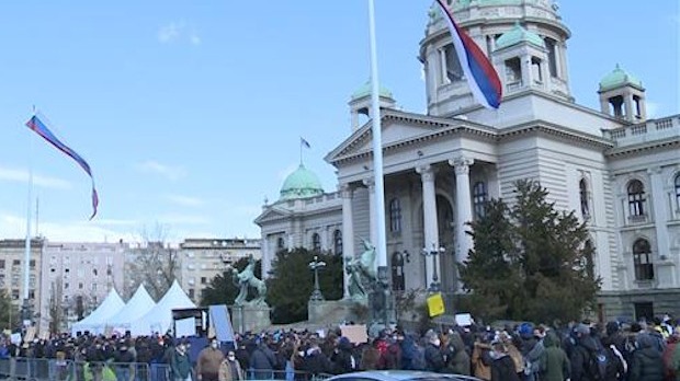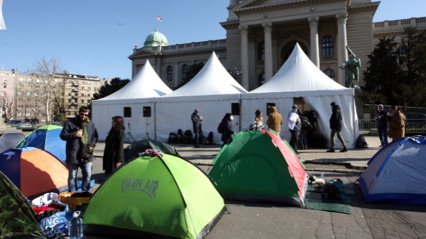 Premijerka Ana Brnabić razgovala je u Skupštini Srbije sa predsednikom parlamenta Ivicom Dačićem. Nakon toga zadržala se u kratkom razgovoru sa frilenserima koji protestuju ispred parlamenta.