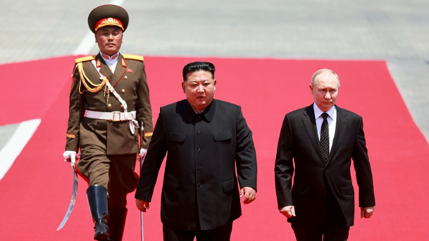 Ruski predsednik Vladimir Putin i severnokorejski lider Kim Džong Un razgovarali su jutros oko sat i po vremena u Pjongjangu. Pošto su izrazili međusobno poštovanje i podršku razgovaraju o međunarodnoj agendi, bezbednosnim pitanjima, saradnji u oblasti privrede, energetike, transporta i poljoprivrede.