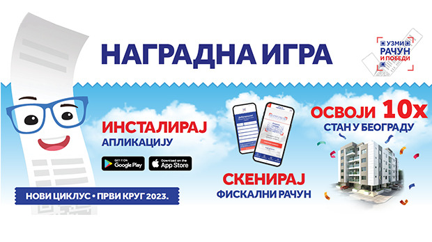 Vlada Republike Srbije, uz podršku NALED-a, organizuje novi ciklus nagradne igre 'Uzmi račun i pobedi'. Prvi krug trajaće od 12. januara do 25. februara 2023, a umesto slanja fiskalnih računa u kovertama, građani će pravo učešća ostvariti registrovanjem računa putem mobilne aplikacije 'Uzmi račun i pobedi', koju je razvila Poreska uprava Srbije. Drugo izvlačenje je 4. februara u 18.05 na RTS 1.