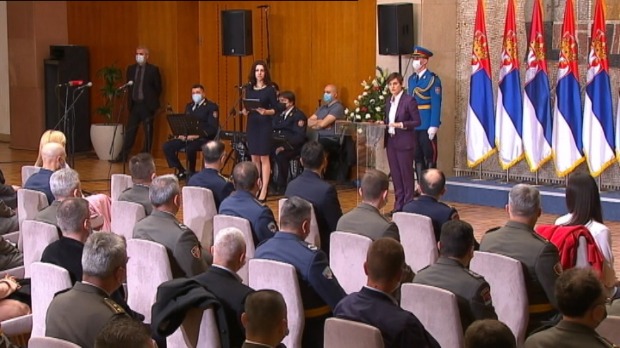 Povodom 23. aprila - Dana Vojske Srbije, premijerka Srbije Ana Brnabić, u ime predsednika Srbije Aleksandra Vučića uručila je odlikovanja pripadnicima Ministarstva odbrane i Vojske Srbije.