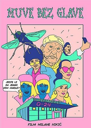 У филму "Муве без главе", по сценарију и у режији Милане Никић, прича осморо купаца заглављених у супермаркету судара се у једну - причу о колективном лудилу које траје у нама док купујемо намирнице за свакодневни живот. Ово је комични сусрет стереотипа из комшилука снимљен из визуре једне муве. У филму играју Исидора Влчек, Силвиа Крижан, Алиса Лацко, Ана Рудакијевић, Сузана Златановић, Власта Велисављевић, Јован Живановић, Милица Грујичић, Ђорђе Далиповић, Раде Маричић, Јелена Ђулвезан Милковић, Александар Милковић, Милица Перовић и Младен Вуковић.