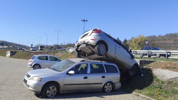 Vozilo probilo bankinu u selu Žirovnica, sletelo s kolovoza i palo na krov automobila koji je bio parkiran. Niko nije povređen.