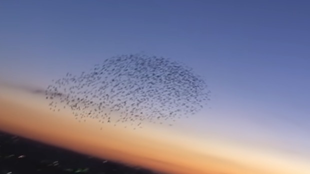Uz žamor velike grupe čvoraka koje su kružile nebom,tražeći prenoćište na drveću u oblasti Konvi u Velikoj Britaniji, zarobljen je dron na nebu.