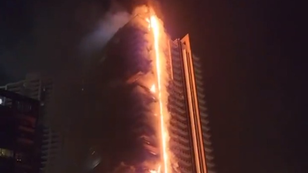 Veliki požar izbio je sinoć u tridesetpetospratnoj zgradi u Dubaiju pored najvišeg oblakodera na svetu, Burdž Kalife. Vatra je ugašena, a još se ne zna da li ima povređenih.