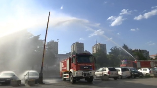 Unakrsna vodena paljba u Nišu za srpske vatrogasce koji su gasili požar na Eviji