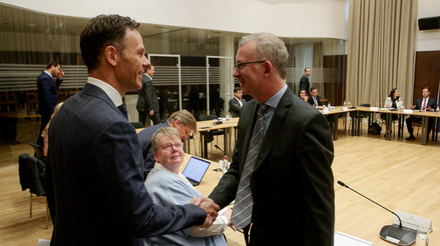 Ministar finansija Siniša Mali razgovarao je s delegacijom Međunarodnog monetarnog fonda koju predvodi Donal Mekgetigan o planiranom povećanju penzija u januaru, o usvojenom budžetu Srbije, nivou javnog duga, poreskoj administraciji, energetskom sektoru, sistemu 'Iskra“, neophodnoj zakonskoj regulativi za sprovođenje daljih reformi.