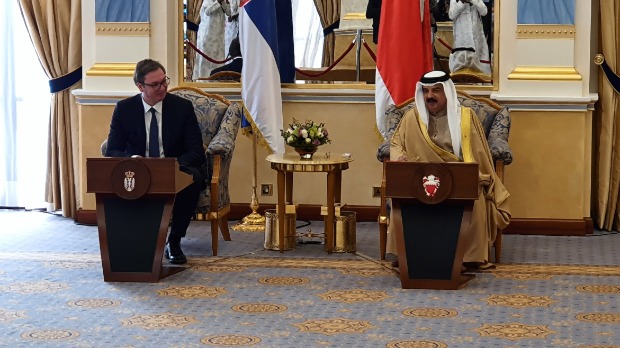 Današnji razgovori su od istorijskog značaja za odnose dve zemlje, ocenili su kralj Bahreina Hamad bin Isa el Kalifa i predsednik Srbije Aleksandar Vučić neposredno po dolasku Vučića u posetu toj zemlji. Vučić, koji očekuje posetu kralja Bahreina i otvaranje ambasada dveju zemalja, navodi da su razgovarali o saradnji u različitim sferama.