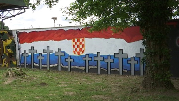 ... ovim krajevima. I mural iscrtan dan ranije, iza spomenika ubijenim hrvatskim policajcima, čelnici ...