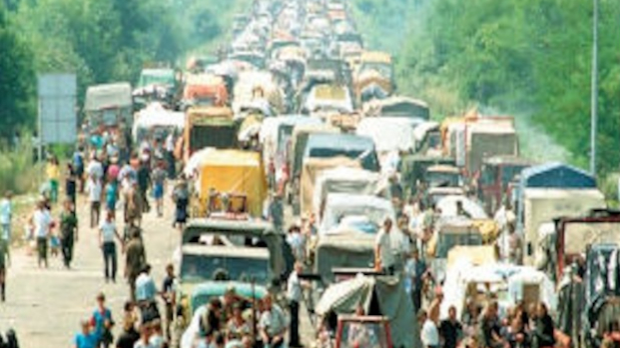 Probudila sam se ispod traktorske prikolice, prljava i umorna, još mokra od kiše koja nas je neumoljivo progonila. Pod ceradom, koja je podsećala na one kaubojske kočije, u koloni koja se nije prekidala, grabili smo dalje, putem koji je vodio preko Drine i Save, tamo gde su nas odavno 'terali'! Bože, šta će biti s nama?!?! U tu nepreglednu, nesrećnu kolonu stali su vekovi trajanja i borbe. Iako tada nije tako izgledalo, jasno je danas da nismo poraženi i uništeni. Dokaz se nazirao već u koloni, u radoznalim dečjim očima koje su virile ispod cerada, u plaču beba koje su se rađale usput...