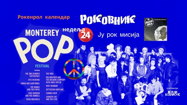 Srećan rođendan ove nedelje čestitamo Kim Dil, Točku, Koji, Rambu Amadeusu, Boj Džordžu, Zoranu Predinu i Stivu Volšu. Počeo je trodnevni Monterej Pop Festival na kome je nastalo „Leto ljubavi”. JU rok misija je snimila pesmu „Za milion godina“.