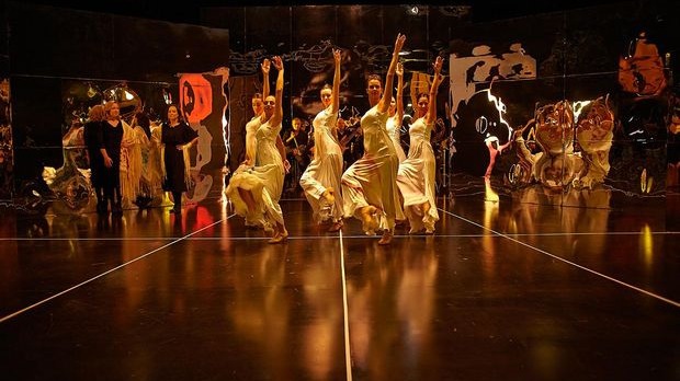Glumačka trupa nastupa u provincijskom gradu. Iza kulisa probe predstave „Edip', glumci i ekipa odigravaju svoje redovne zađevice i konflikte dok ih iznenada ne uplaši nepoznati zvuk.