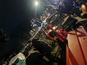 Грађани који су били испред ограде код Пионирског парка, у којем су грађани из Удружења "Студенти 2.0", преврнули су један трактор и покушали да то ураде са још једним возилом, а окупљени уз групу Студенти...